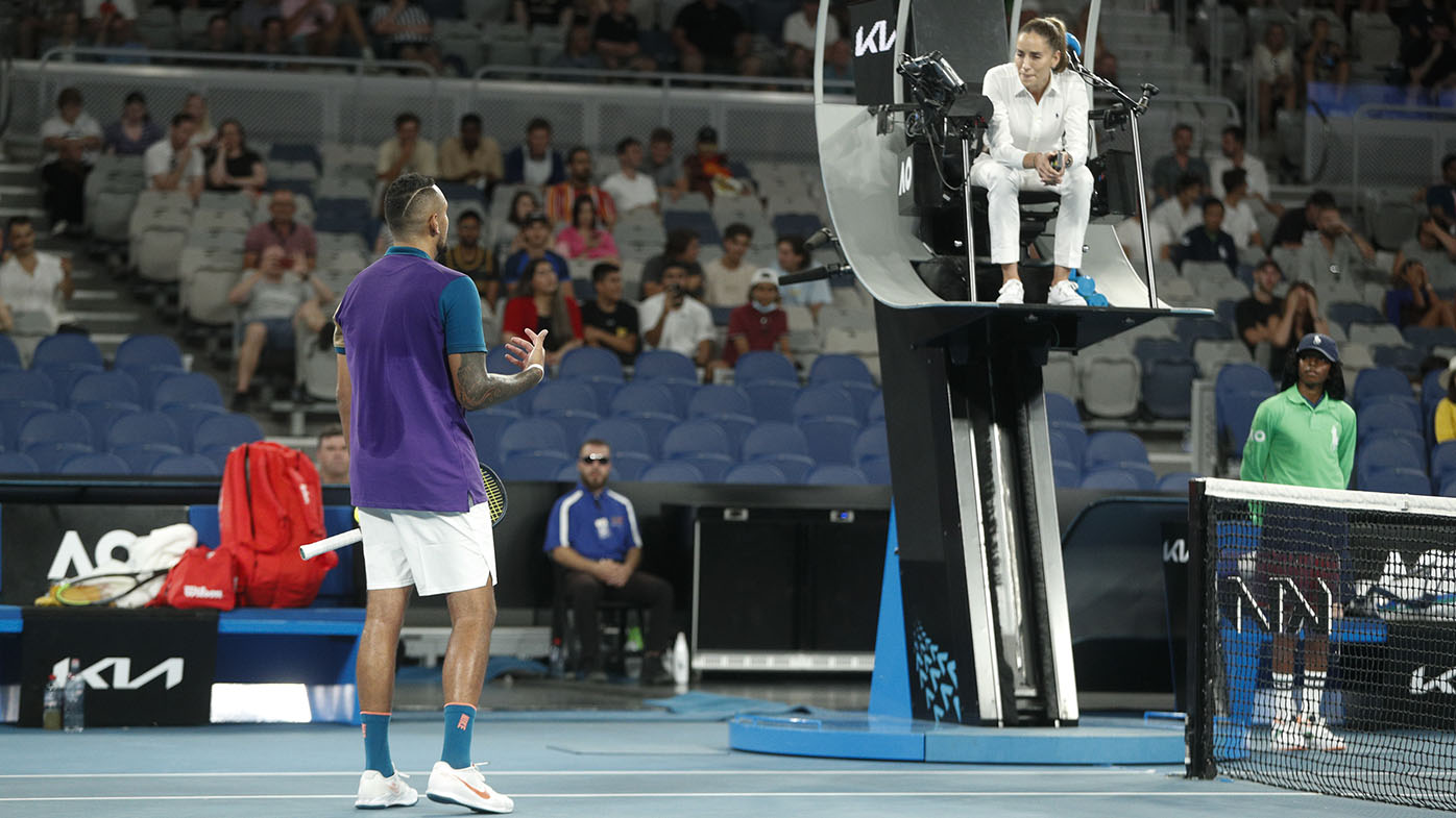 Praėjo daugiau nei keturi mėnesiai, kai Kyrgios sužaidė turo lygio rungtynes. Dominicas Thiemas trečiajame ture pralaimėjo „Australian Open“. Kyrgios numetė du setus, kad pamiltų lyderio pozicijas.